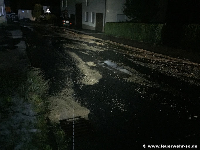 Eine stark verschmutzte Fahrbahn war durch Geröll in der Weilheimerstraße entstanden.